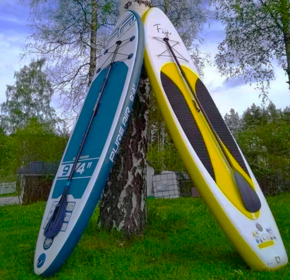 Vuokraatko paljun tai saunan? Lisää mukaan kesäfiilistä vesille! Meiltä saat laadukkaat SUP-laudat (1–4 kpl) ja vesisukset (2 paria) joko erikseen tai osana kokonaispakettia.